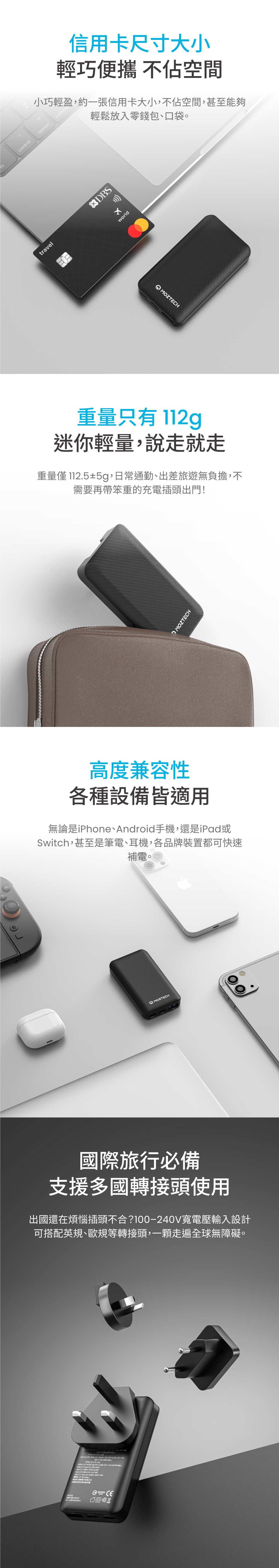 ● 輕巧便攜,口袋收納 — 重量僅112g,尺寸跟信用卡一樣小