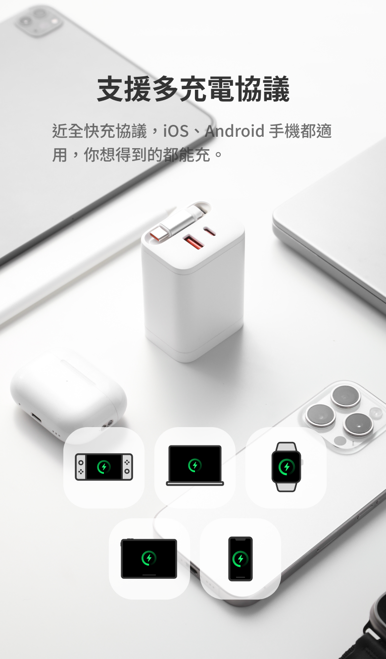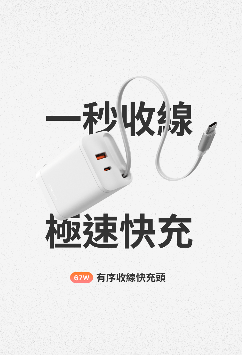 ● 67W 高瓦數快充:支援手機、平板、耳機等設備,連 MacBook Pro 也能輕鬆充電。