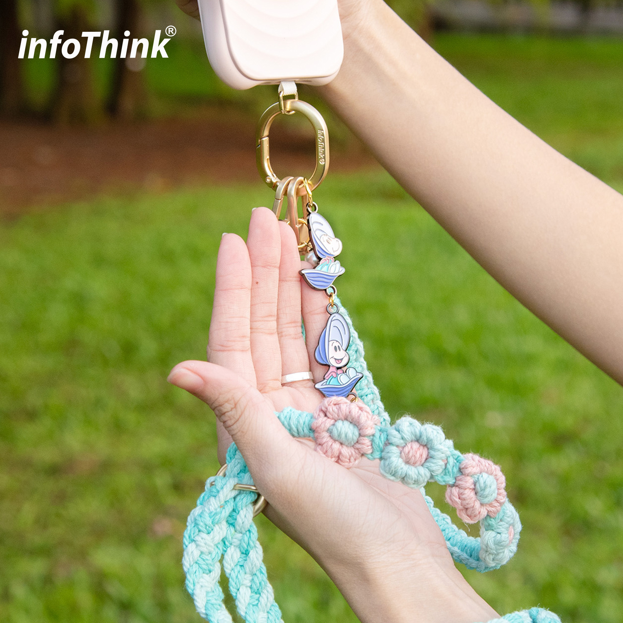 • 造型五金扣環可配掛隨身耳機、證件套等小物