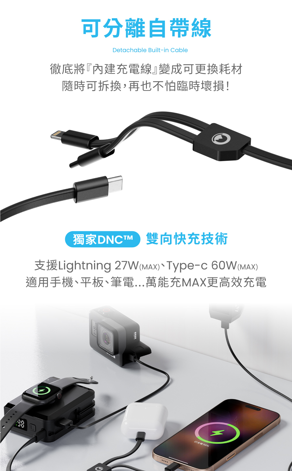 • 獨家DNC技術,一對二充電線,支援 30W MAX 快充