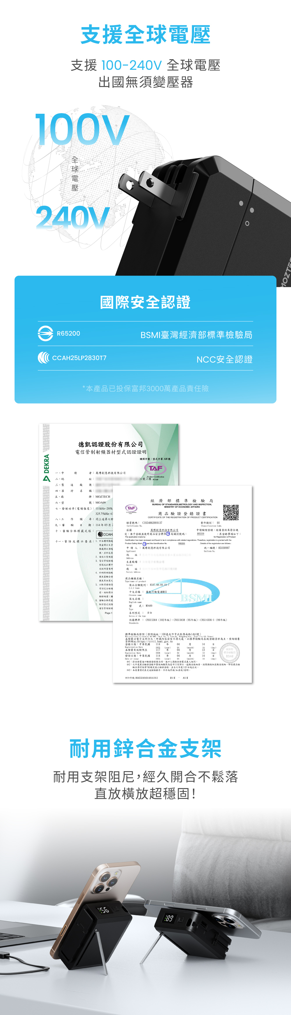 • 耐用鋅合金支架,經久開合不鬆落,直放橫放超穩固