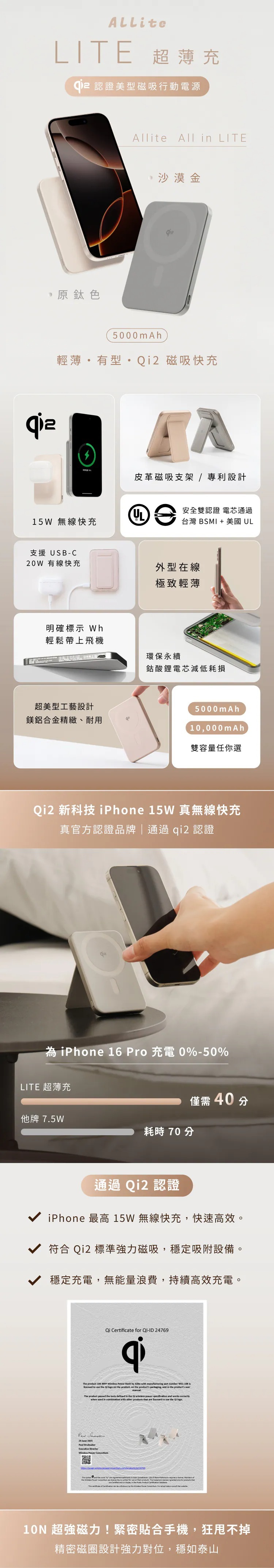 • 產品名稱:Allite LITE超薄充5000 mAh