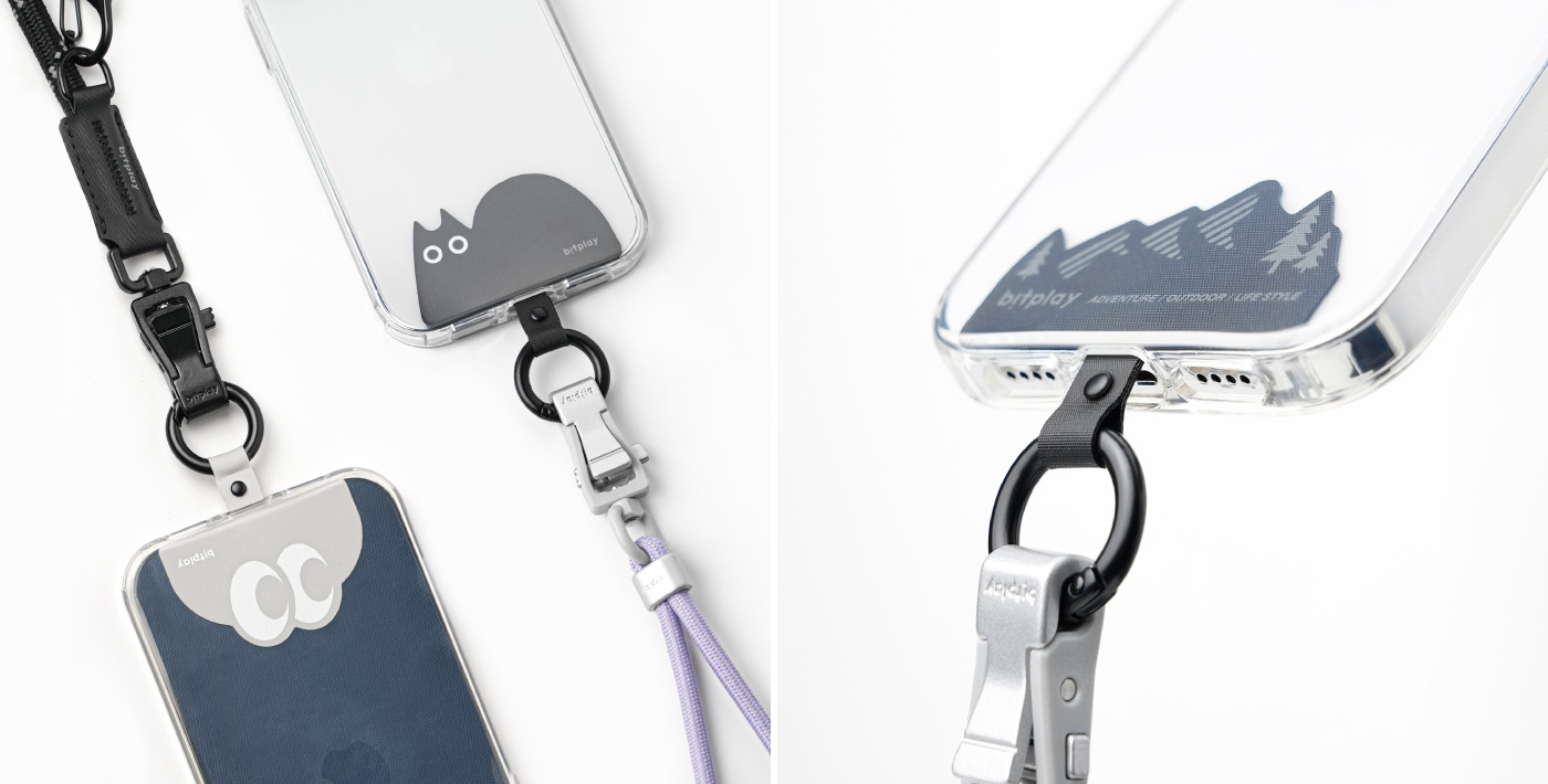 - 掛繩通用墊片可置入於手機殼內,連接手機本身與掛取配件