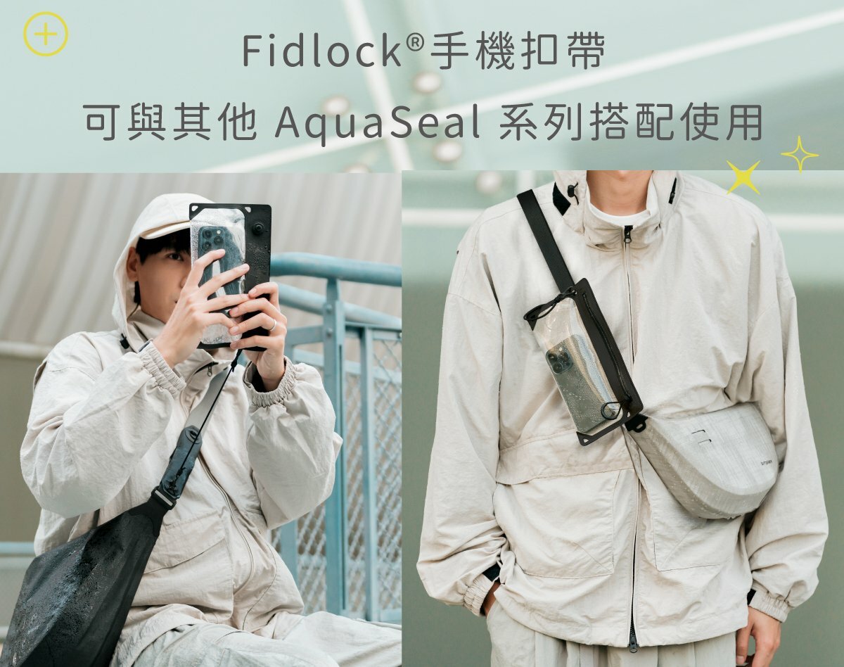 只要將Fidlock®手機扣帶扣在任何包袋的背帶上,即能擁有國際認證IPX7的手機防水袋!