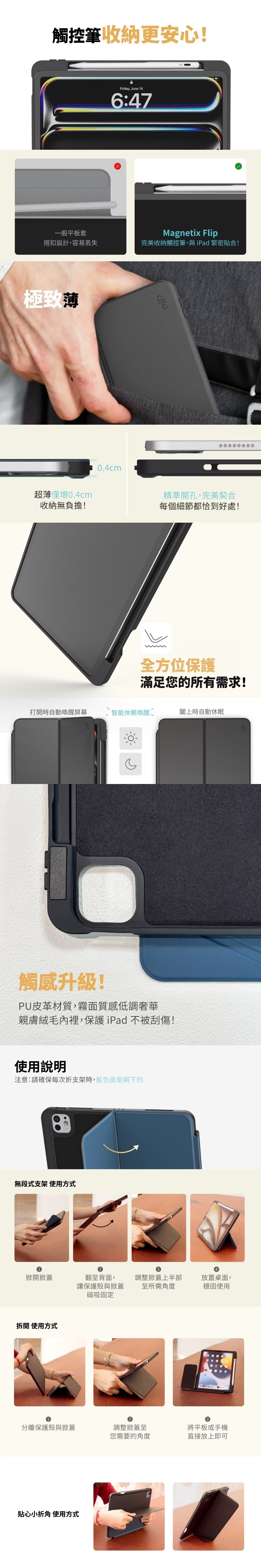 • 極致輕薄,收納方便,僅增厚 0.4cm,便攜無負擔