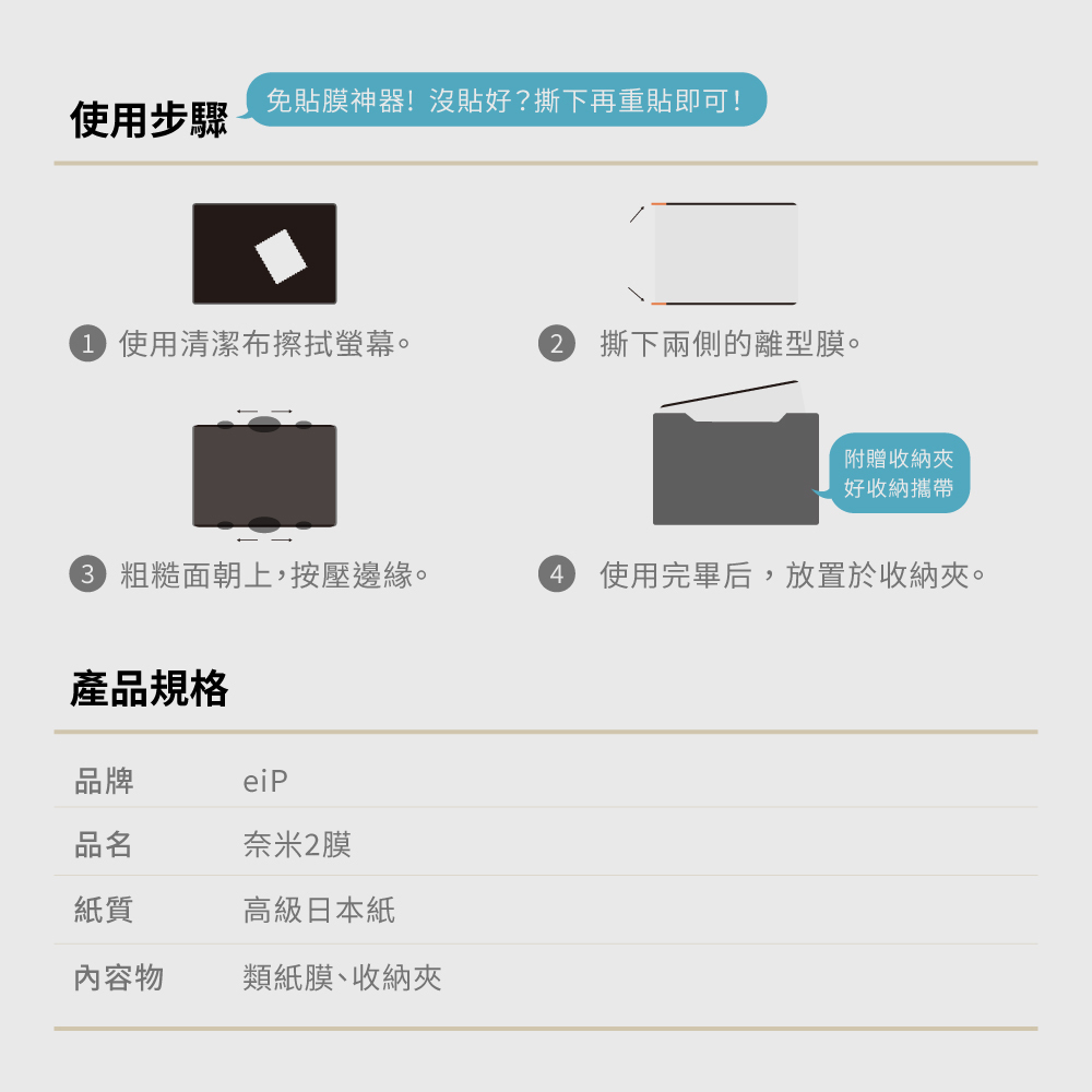 • 全新升級!防塵奈米膠,膠面不黏手 不易沾黏灰塵 重覆黏貼超方便!