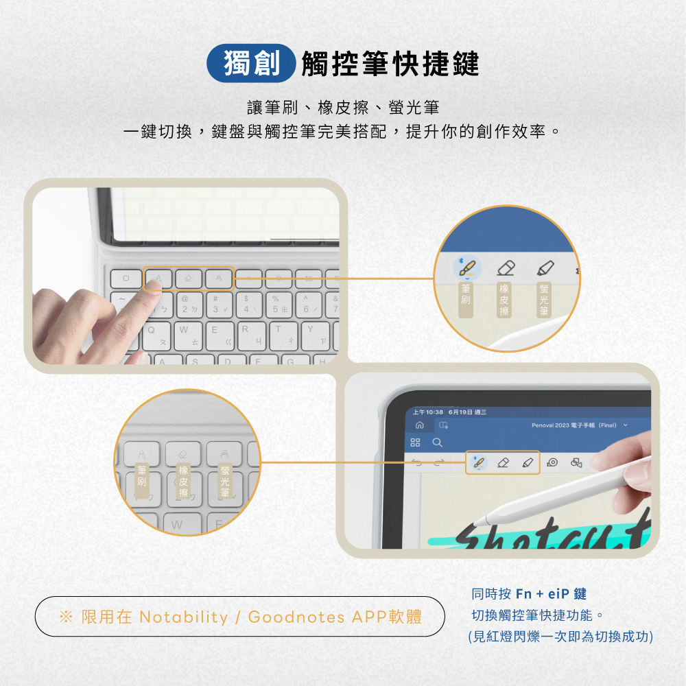 • 獨創觸控筆快捷鍵,筆刷、橡皮擦、螢光筆一鍵切換
