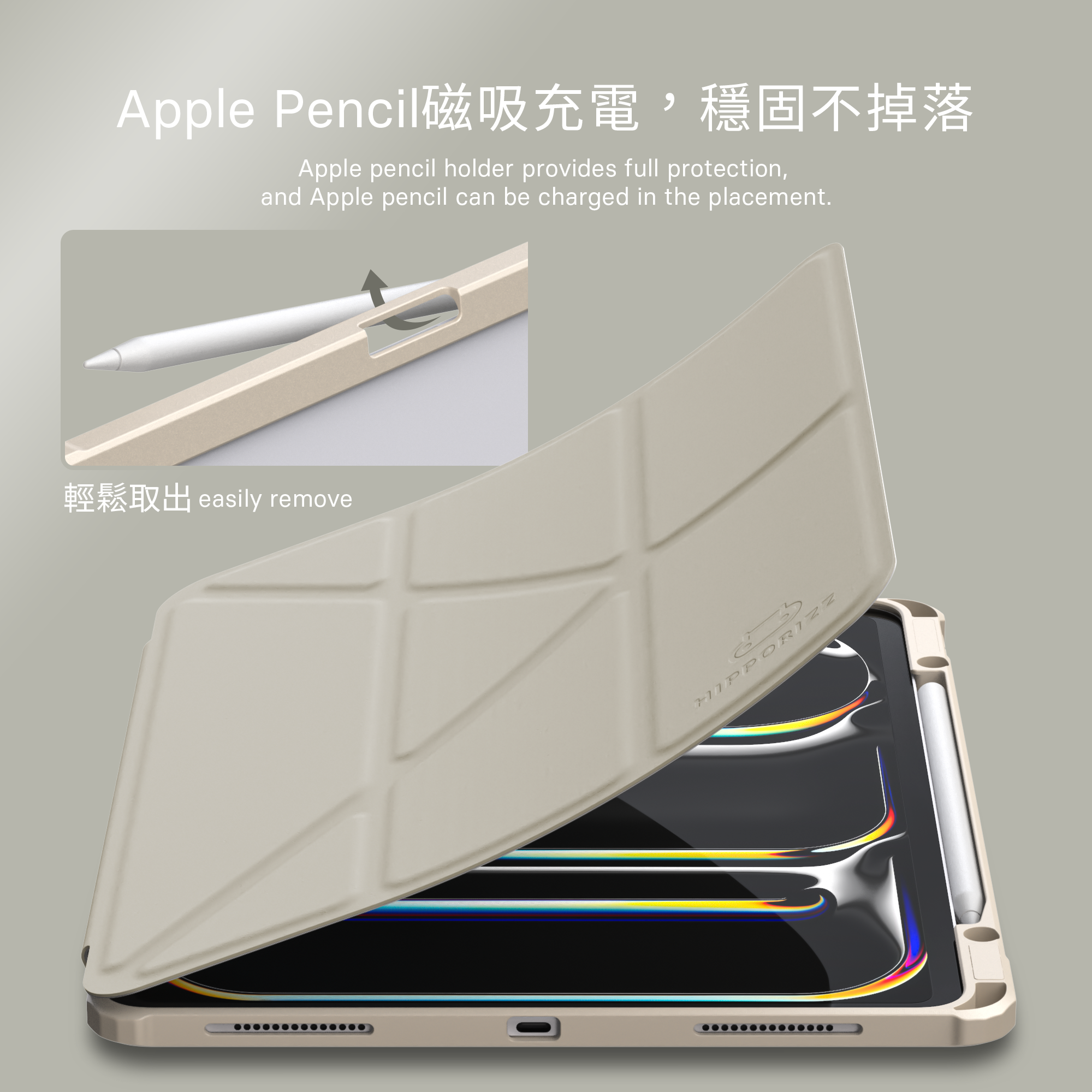 ● 筆槽設計能完整包覆Apple pencil,支援磁吸充電。