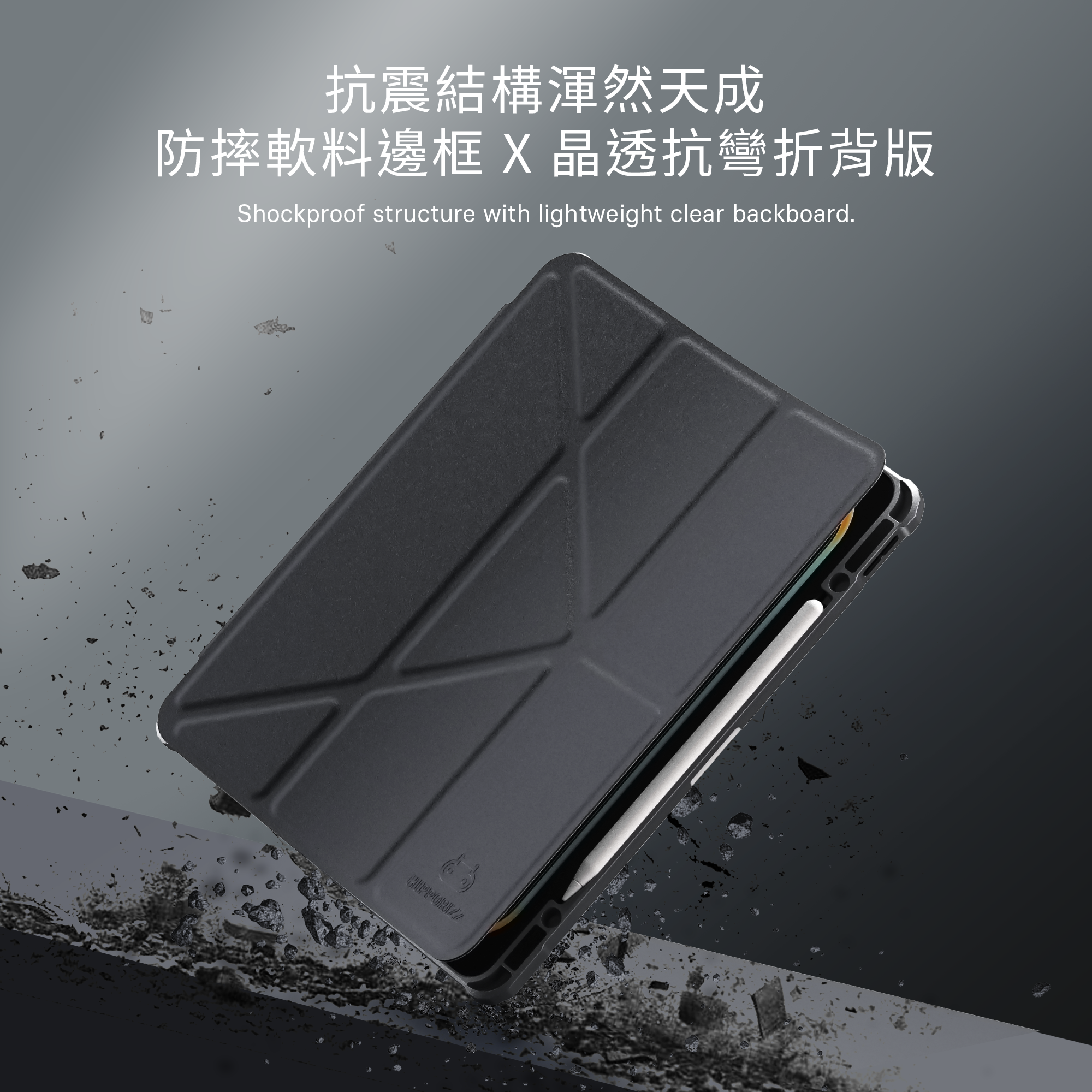 ● 防摔結構邊框與透明背板,有效防止iPad彎折與刮傷。