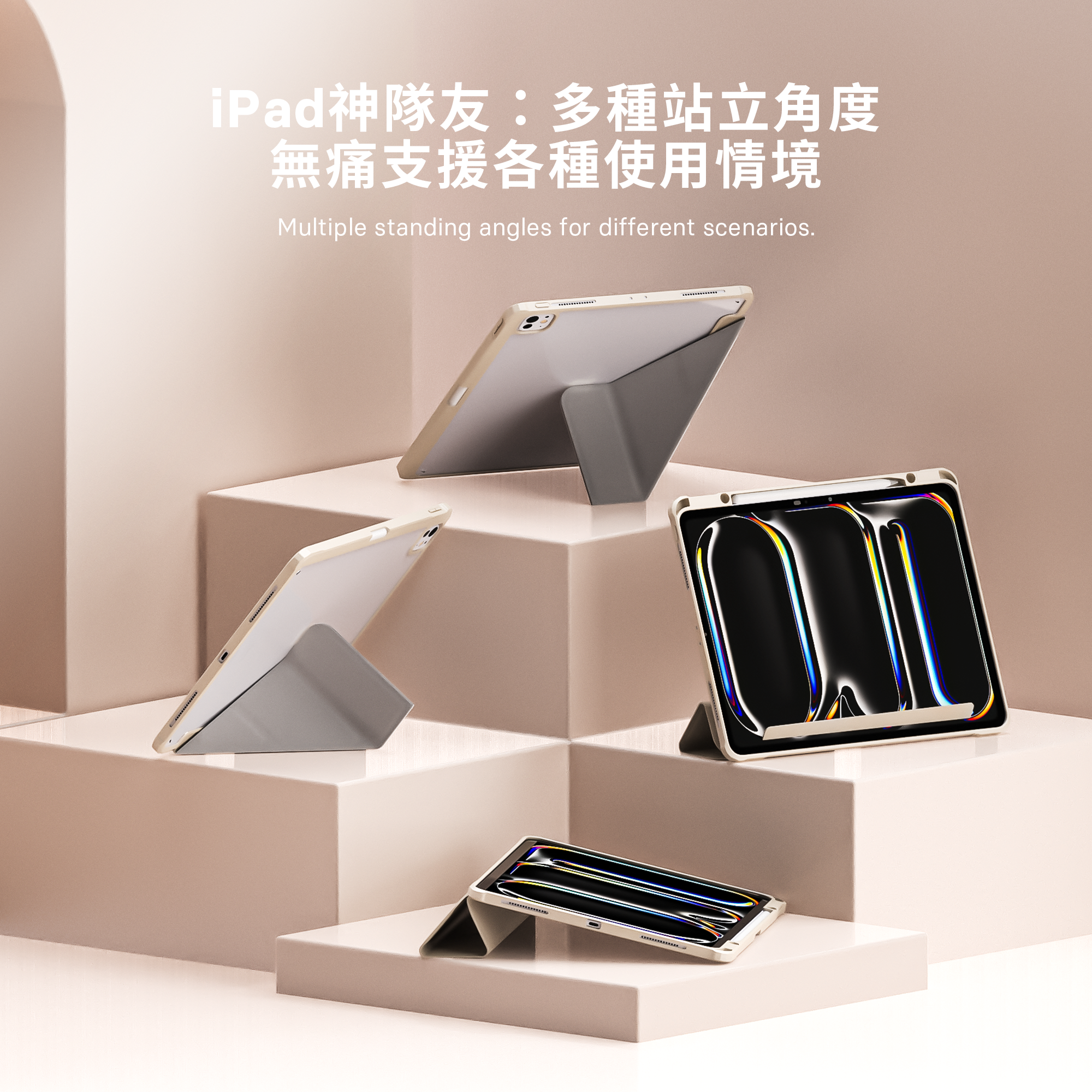 ● 多角度站立面蓋設計,適用於各種iPad使用情境。
