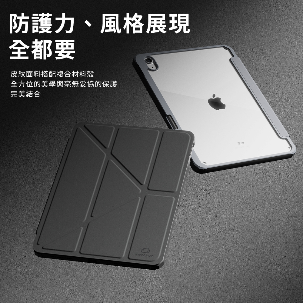 ● 防摔結構邊框與透明背板,有效防止iPad彎折與刮傷。