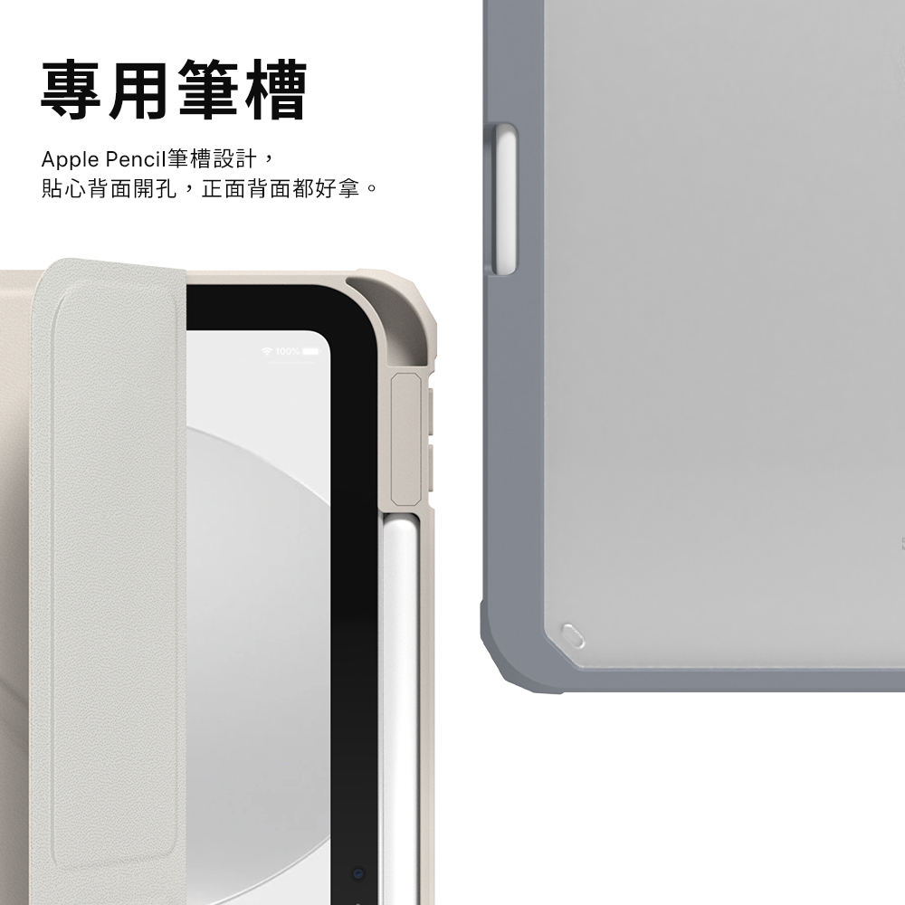 ● 筆槽設計能完整包覆Apple pencil,支援磁吸充電。