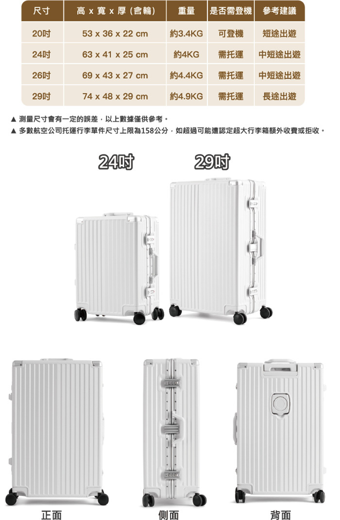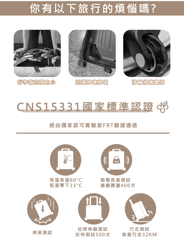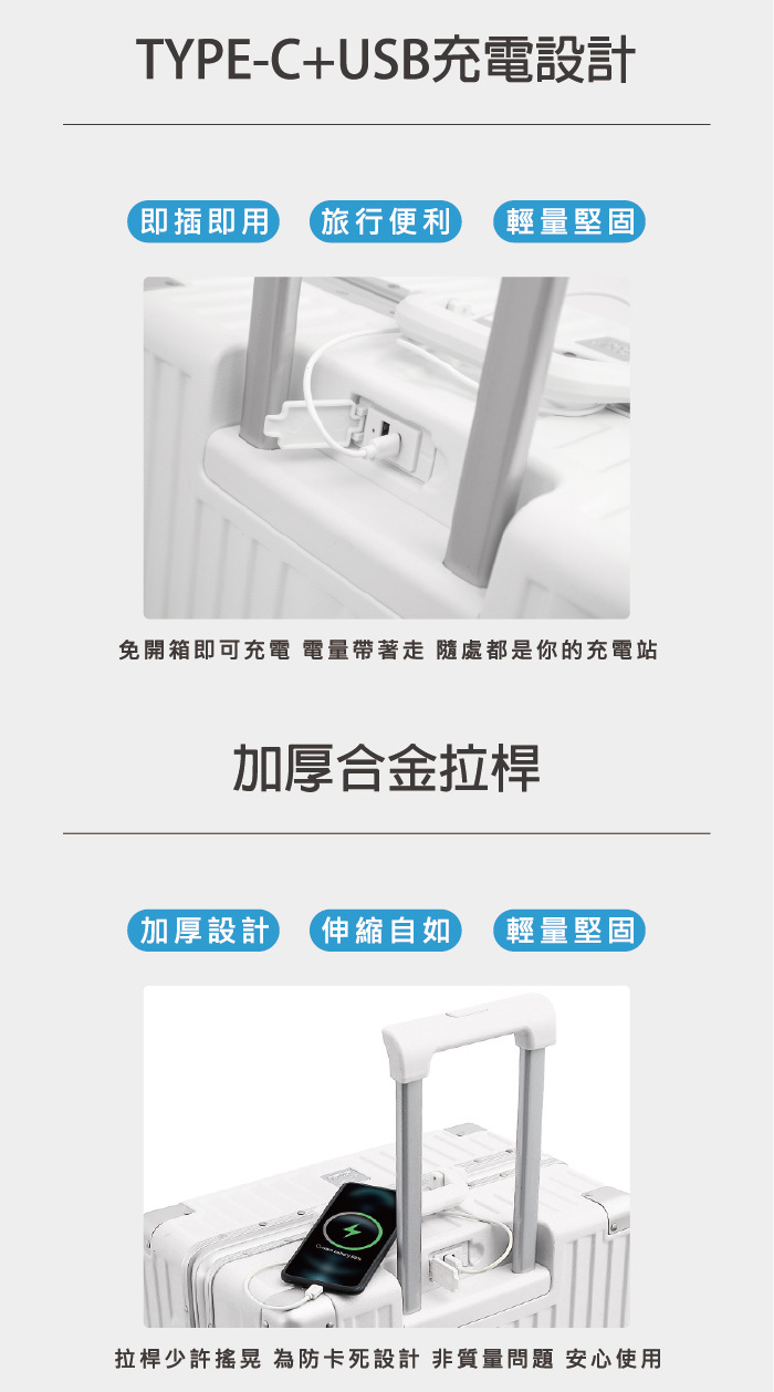 ▸採用PC + ABS 頂規材質:讓您出國不擔心破箱問題。