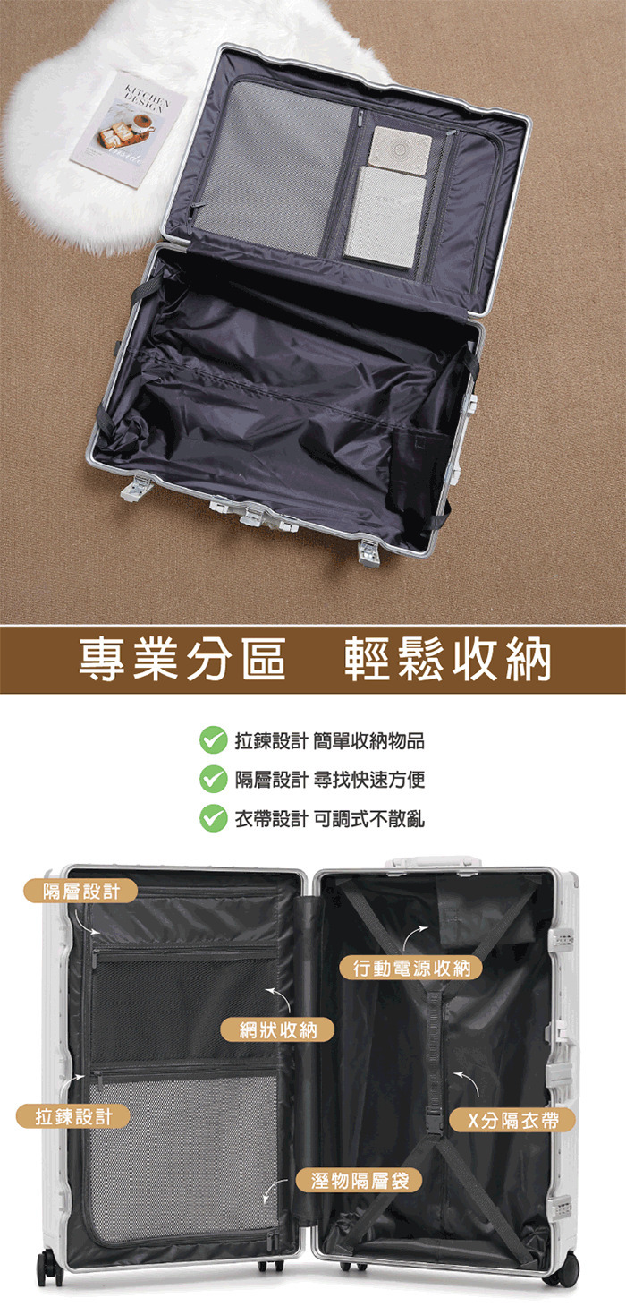 ▸TSA國際海關鎖:安檢無須破壞箱鎖即可檢驗,加快通關速度。
