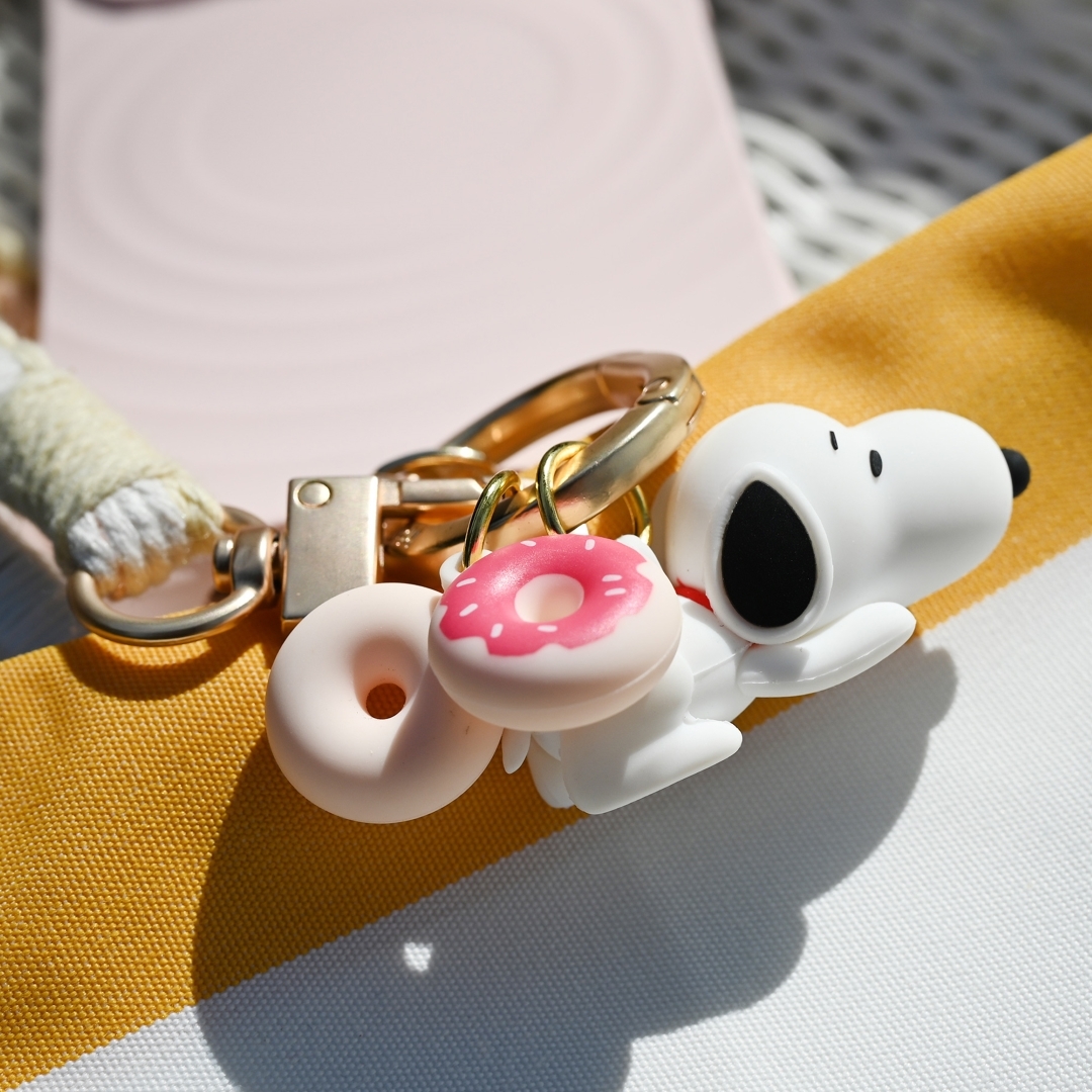 • 造型五金扣環可配掛隨身耳機、證件套等小物