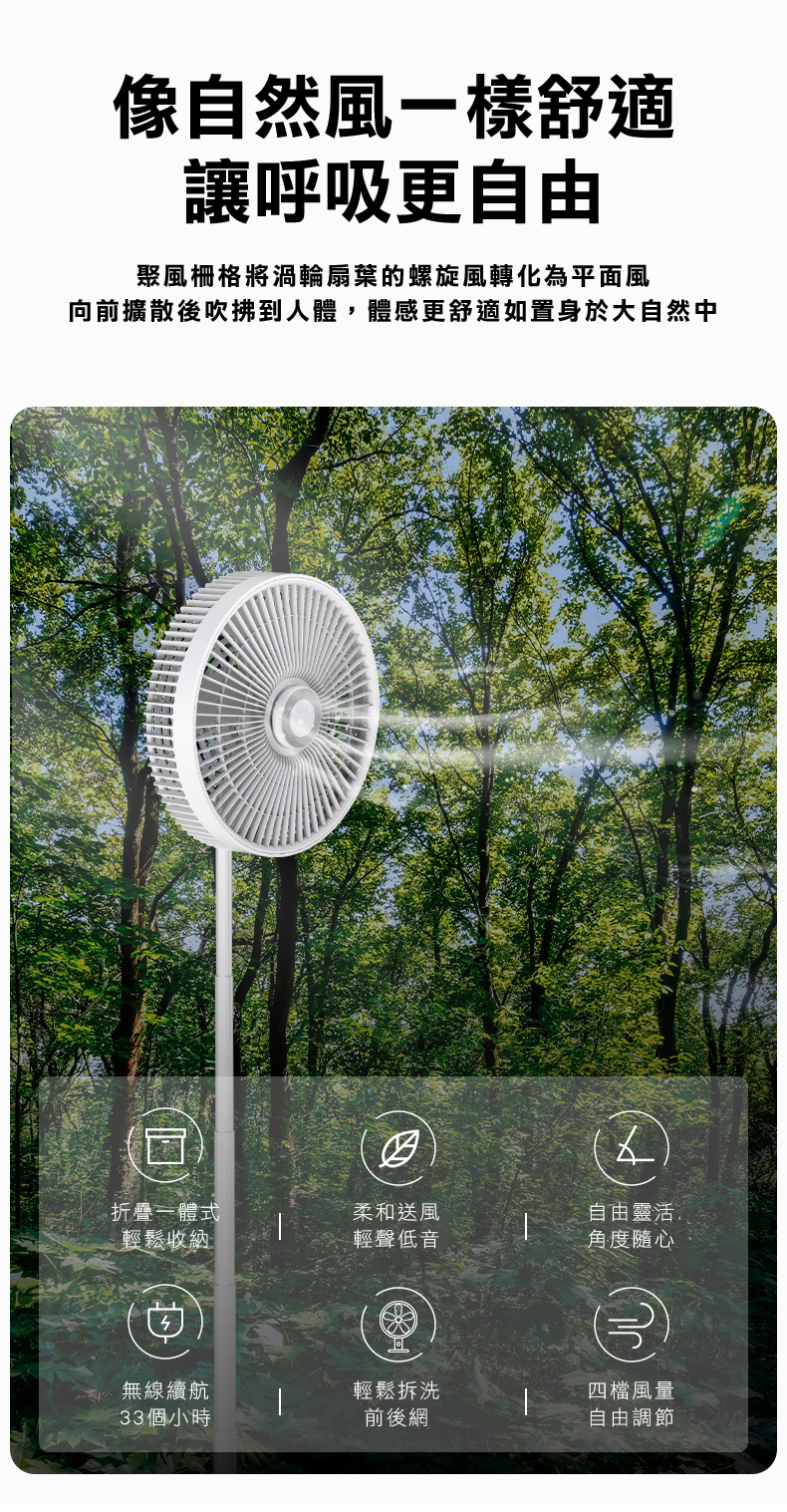 能夠輕鬆清洗的折疊風扇,採用3D立體送風,多種廣角模式可供選擇。