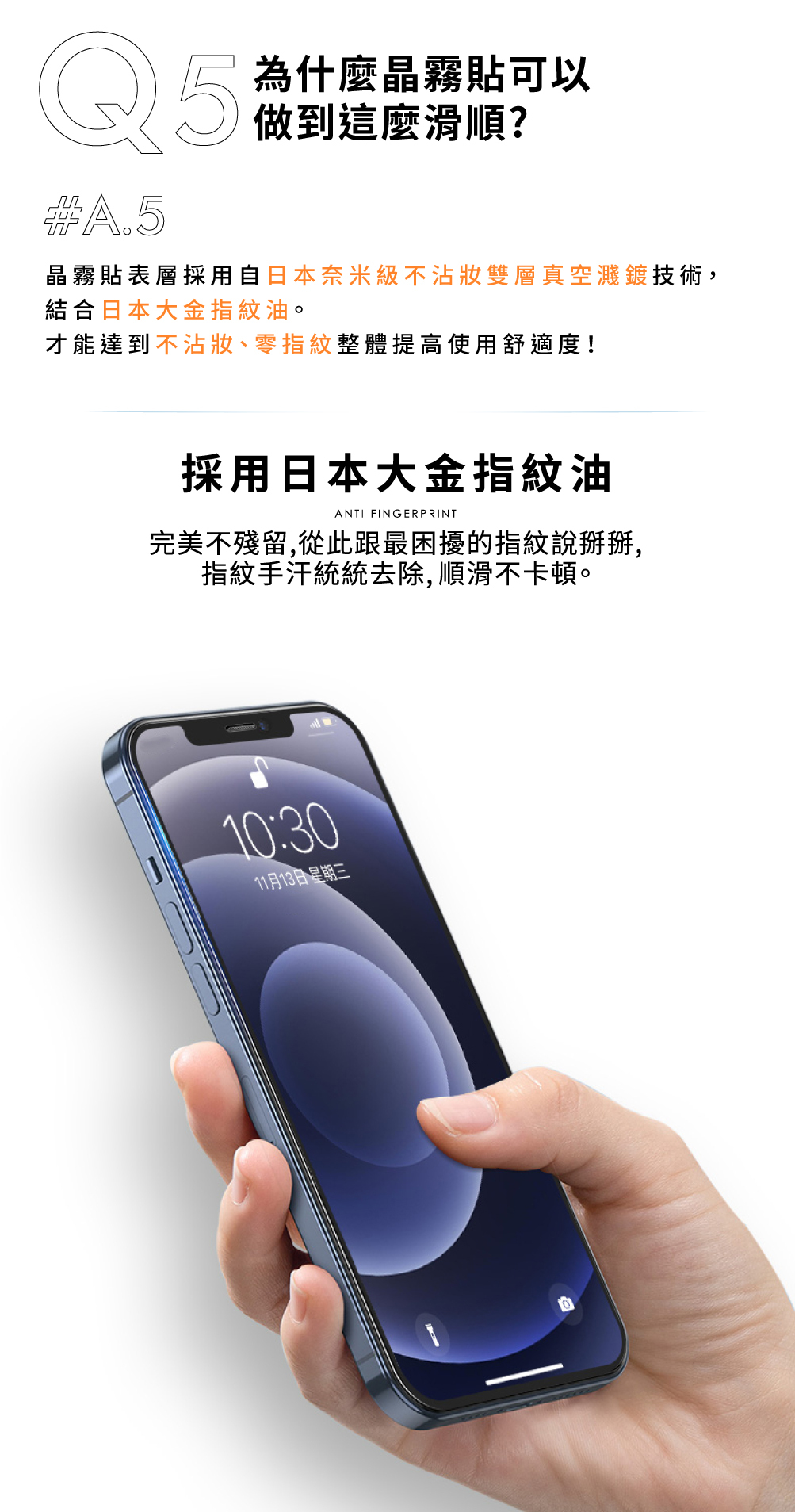 - 表面採用高分子漸鍍抗油污鍍膜技術,有效防止油脂、指紋,觸感爽滑不黏膩