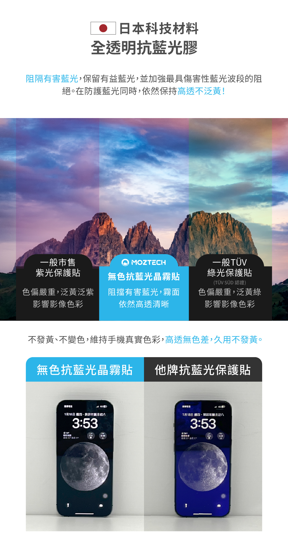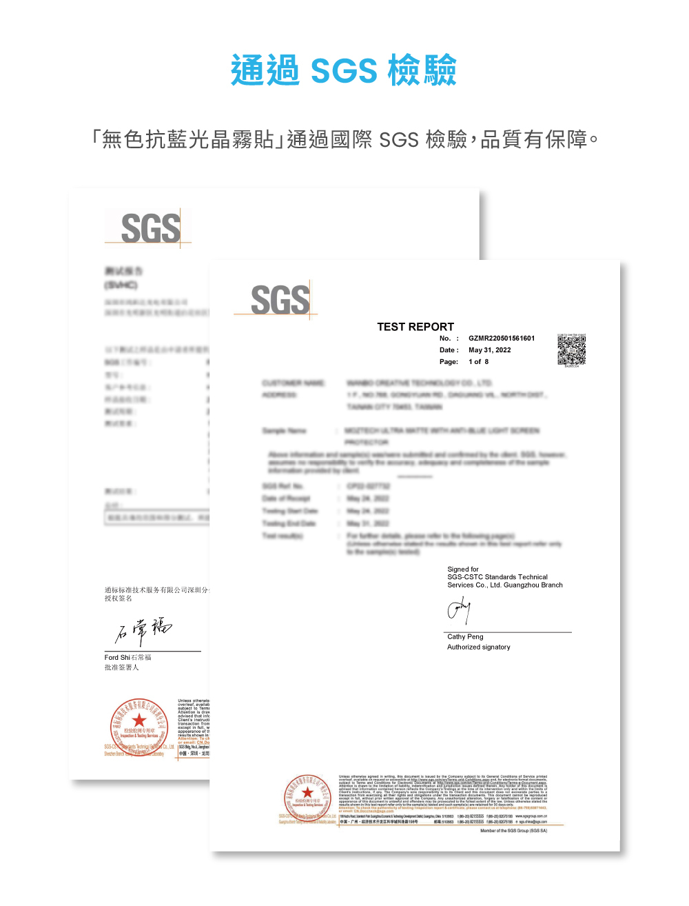 - 實驗室認證,415nm-455nm 的藍光有效阻隔達 50%