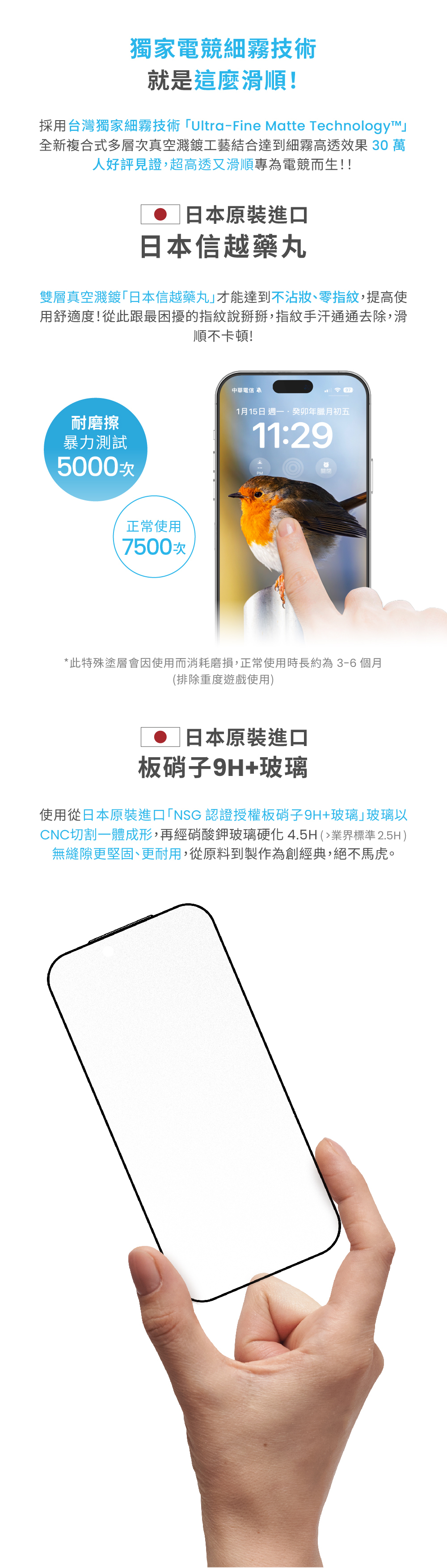 - 日本製造 NSG 玻璃,9H 硬度,避免日常刮傷