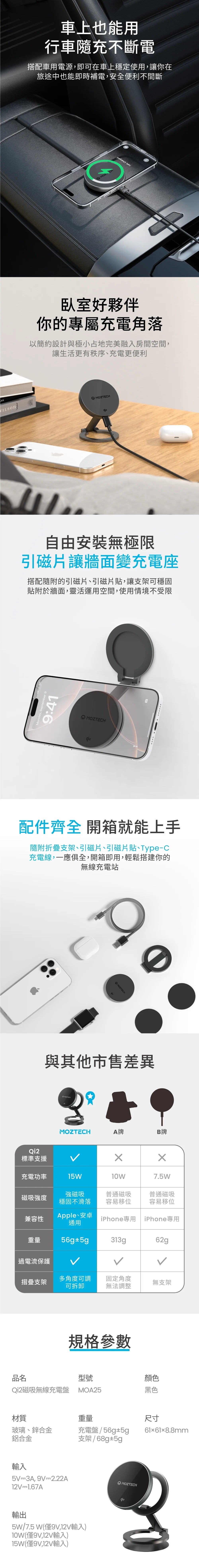 ● 隨附引磁片、引磁片貼,自由充電空間不受限