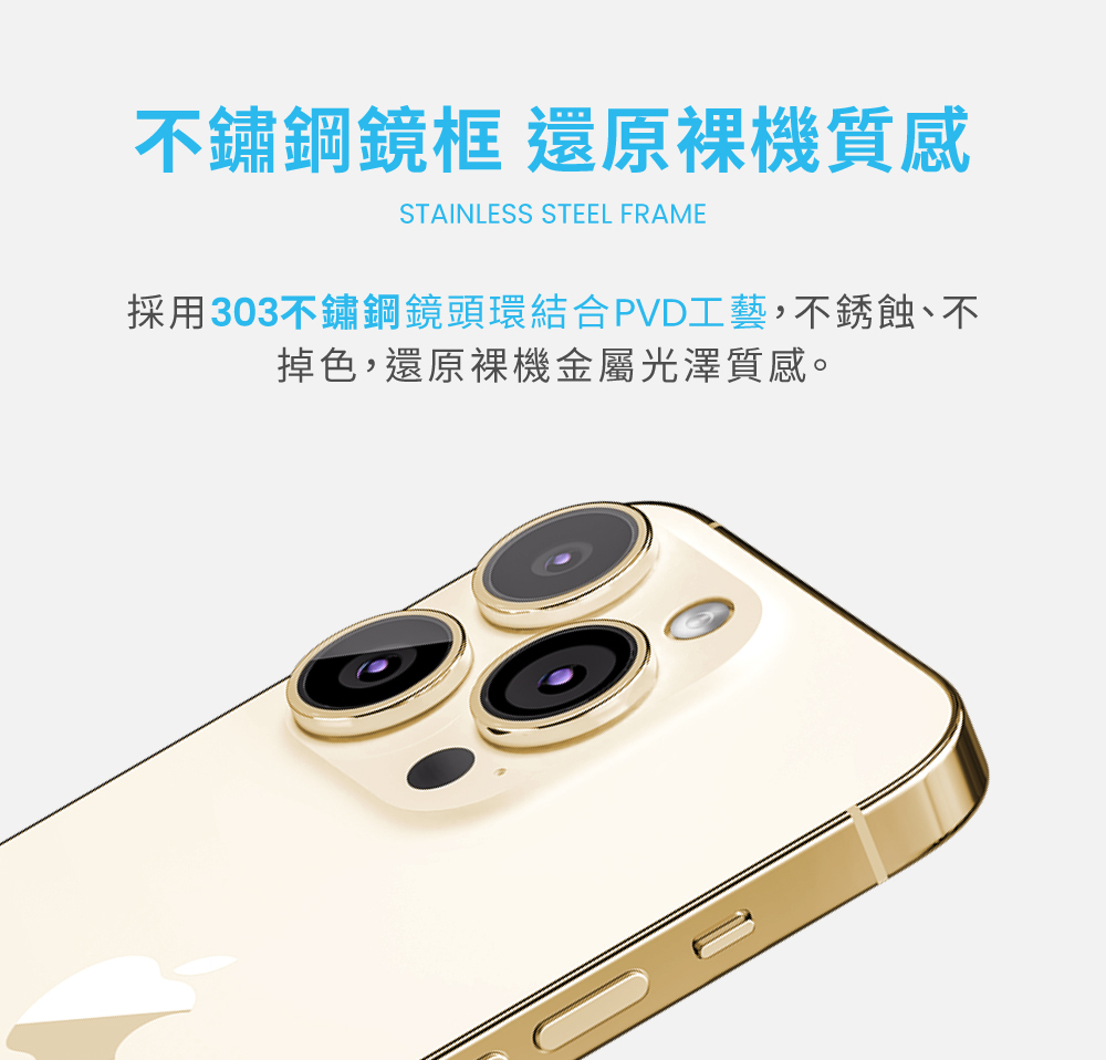 - 採用303不鏽鋼鏡頭環結合PVD工藝,不銹蝕、不掉色,還原金屬光澤質感
