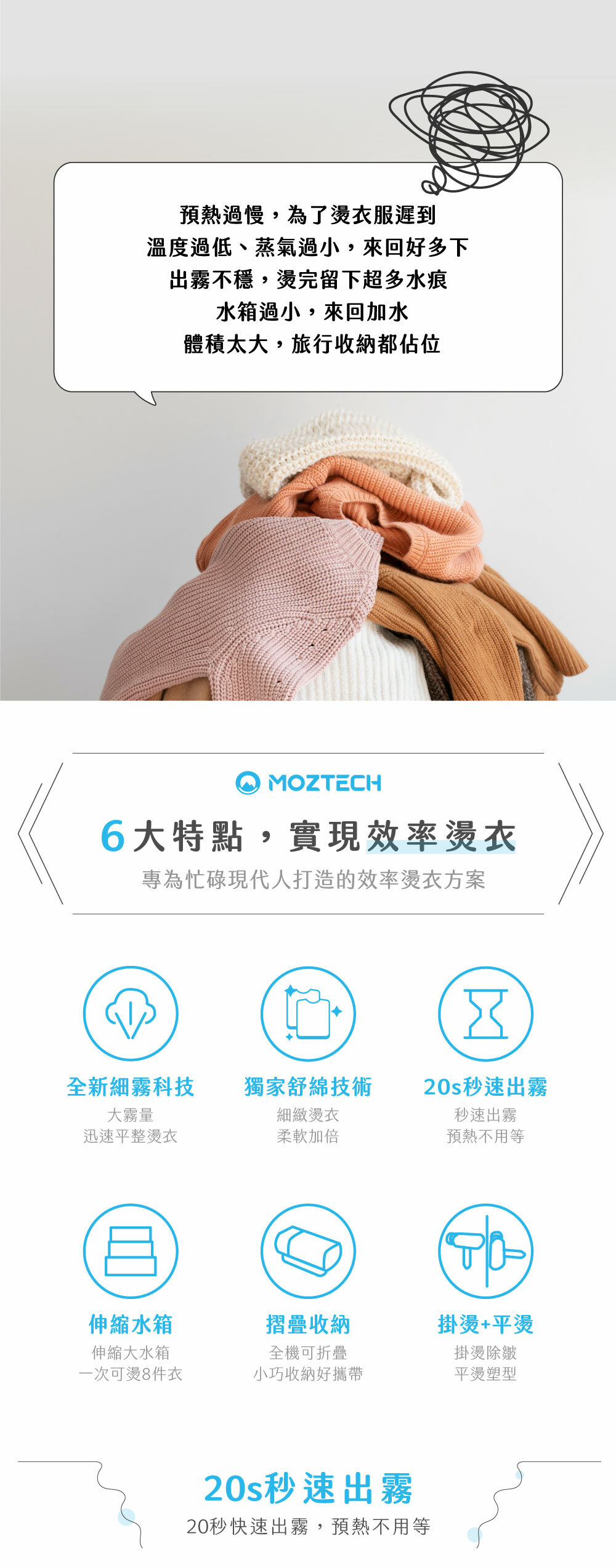 MOZTECH | 折疊式蒸汽掛燙機 大容量水箱 快速出霧 熨燙機 手持式熨燙機 輕量熨燙機 掛燙機 平燙