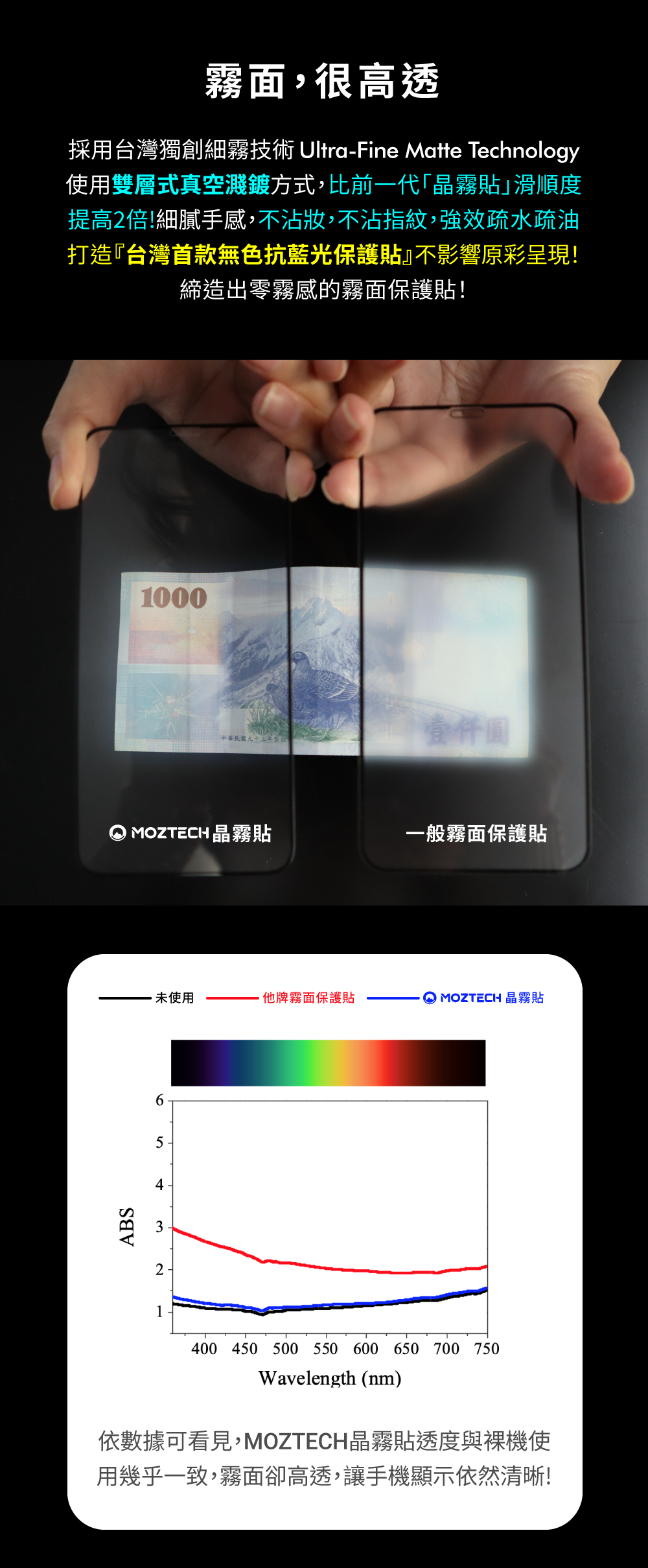 - 台灣獨創技術 𝘜𝘭𝘵𝘳𝘢-𝘍𝘪𝘯𝘦 𝘔𝘢𝘵𝘵𝘦 𝘛𝘦𝘤𝘩𝘯𝘰𝘭𝘰𝘨𝘺™ 高透霧面技術