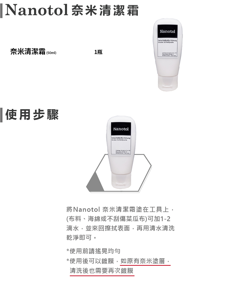 - 奈米清潔霜可以簡單有效去除表面污垢,殘膠、鏽斑
