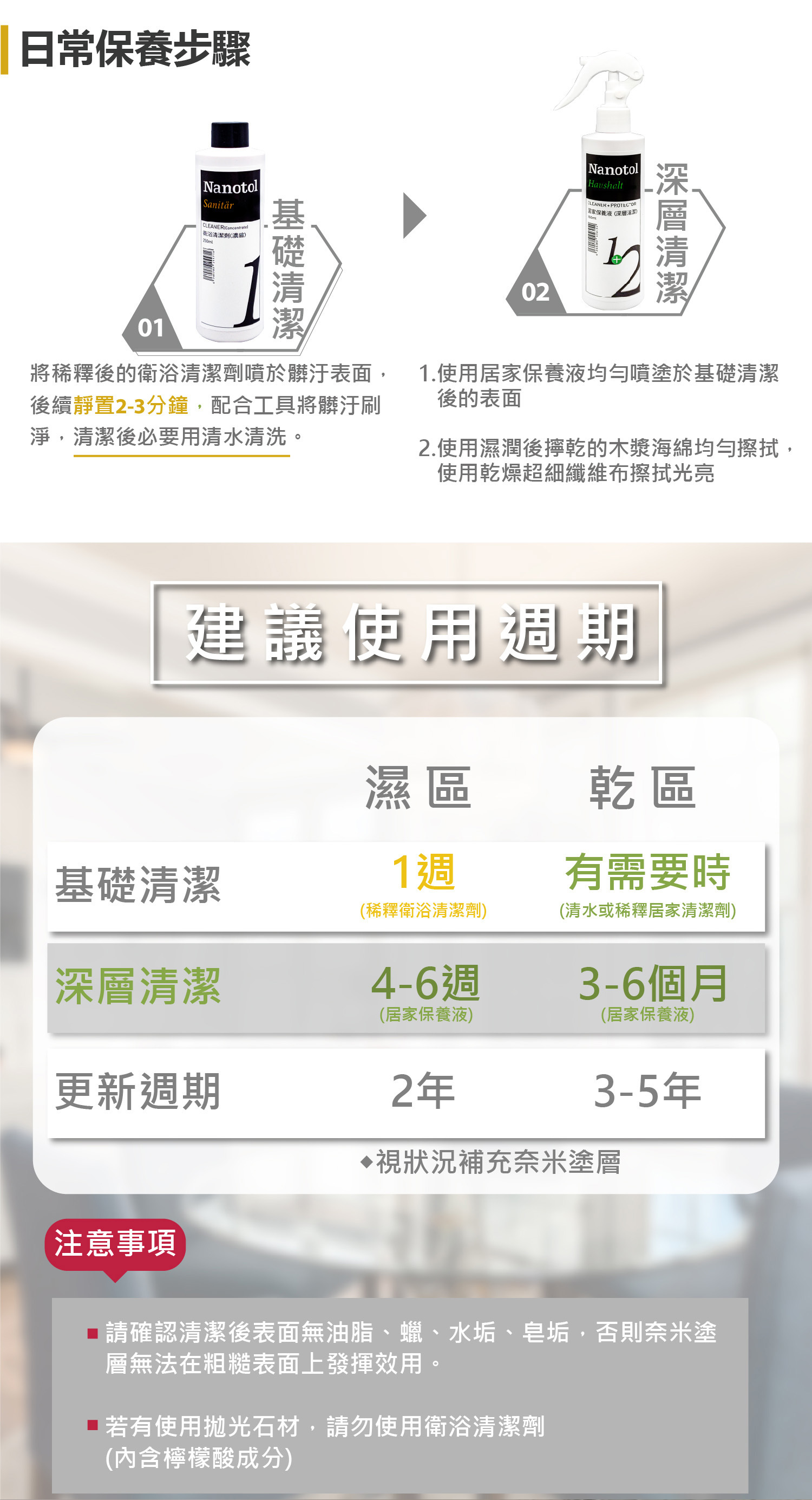 Nanotol是純物理性的附著在表面,可以一次又一次的隨意更新,只要清洗乾淨