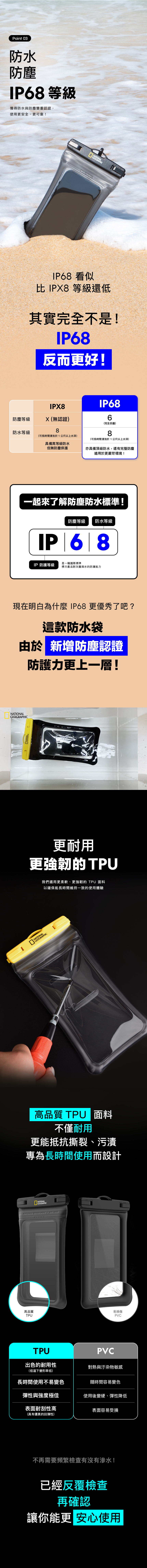 • IP68 等級防水防塵 | 通過國際認證,支援水中長時間浸泡,同時防塵、防沙,戶外也能放心使用。