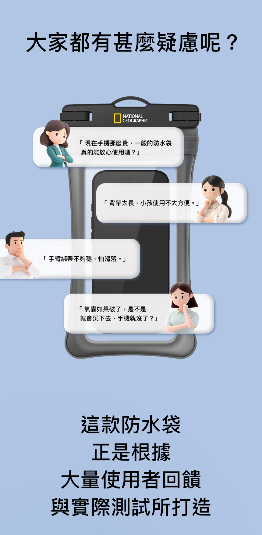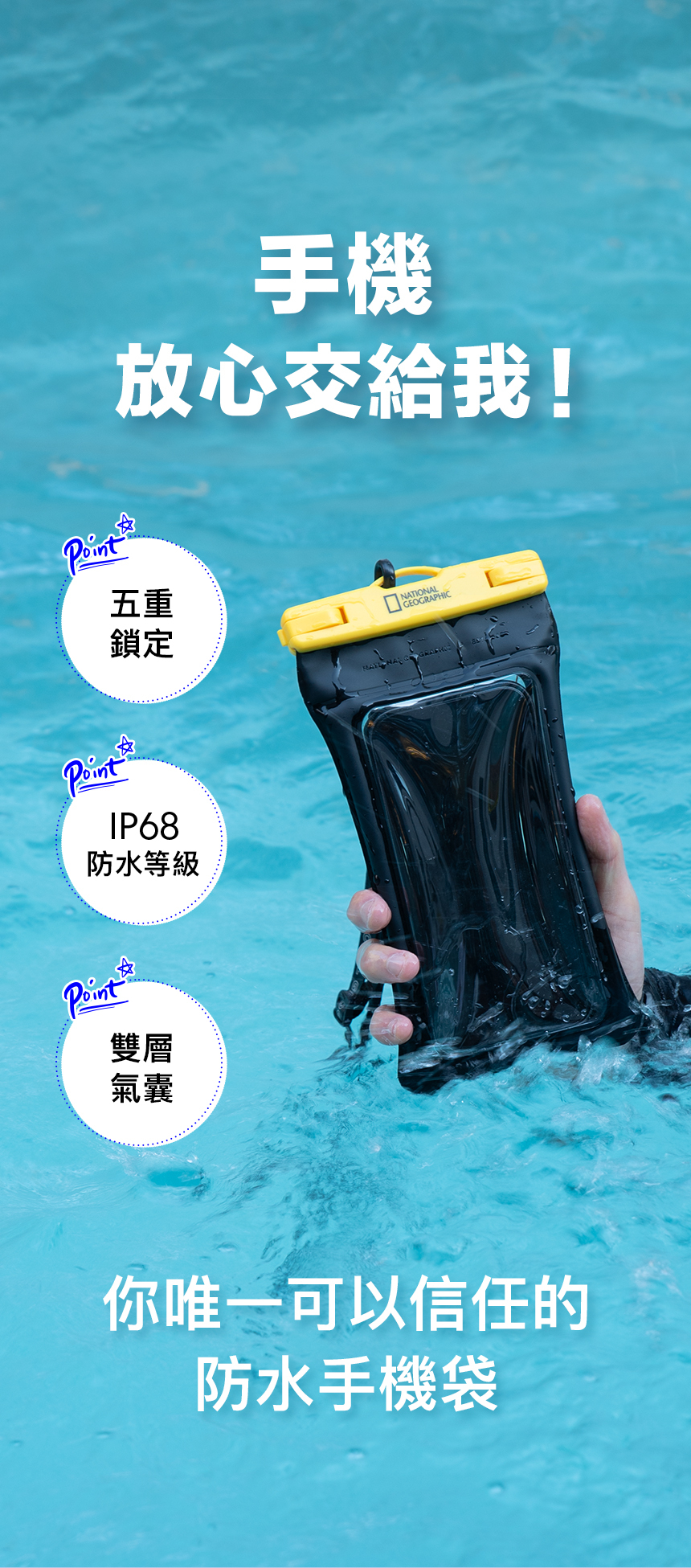 • 雙層氣囊設計 | 內建飽滿雙層氣囊+雙氣閥,即使單層破損也能維持漂浮,手機不沉沒。