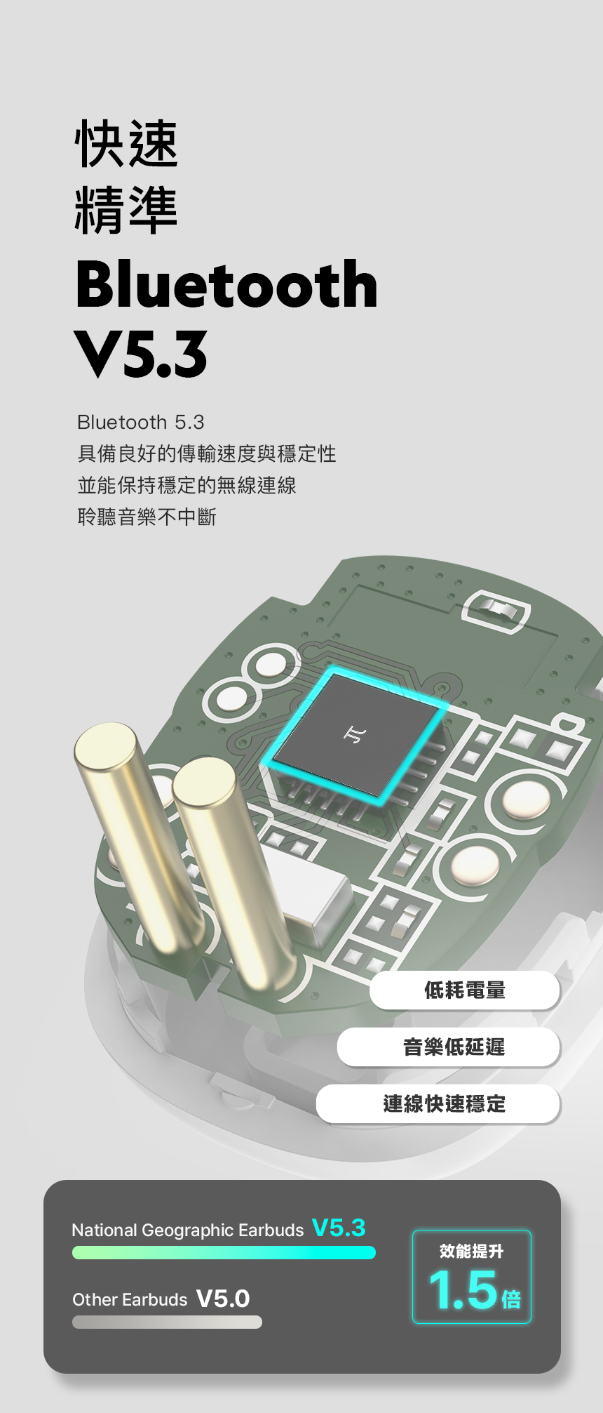 • 藍牙 5.3版本:高速穩定、最遠約 10 公尺