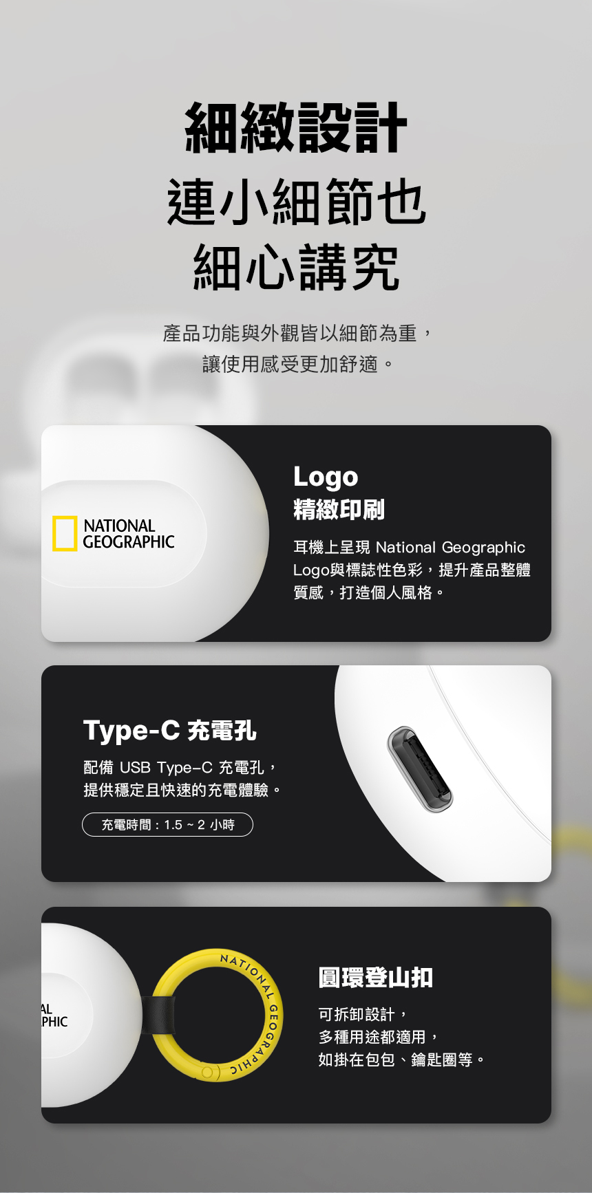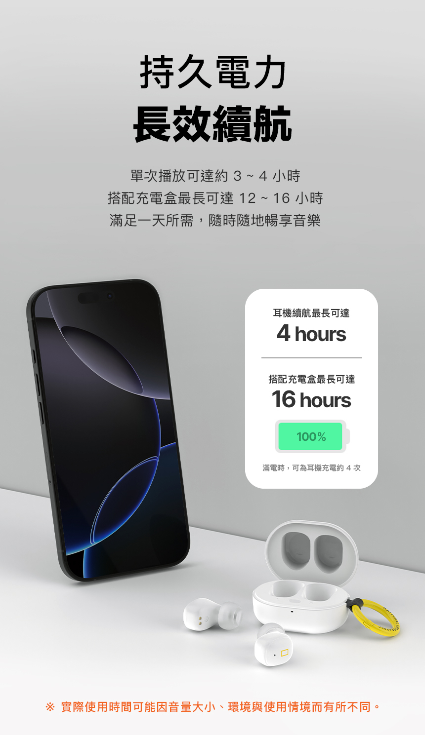 • Type-C 快速充電,約 1.5–2 小時充滿