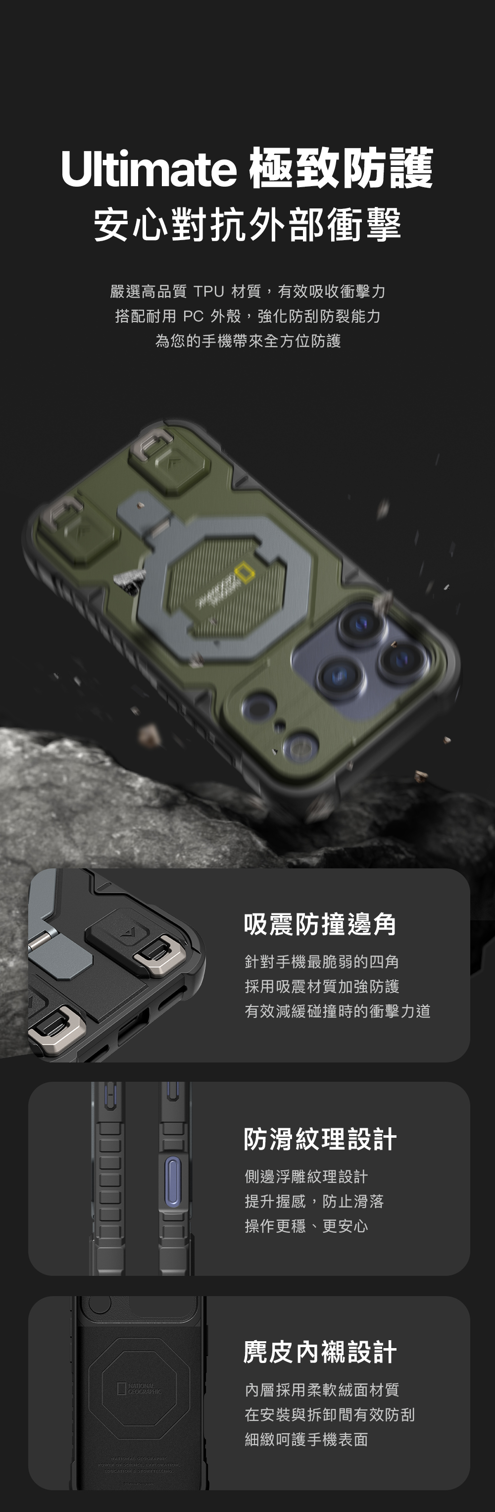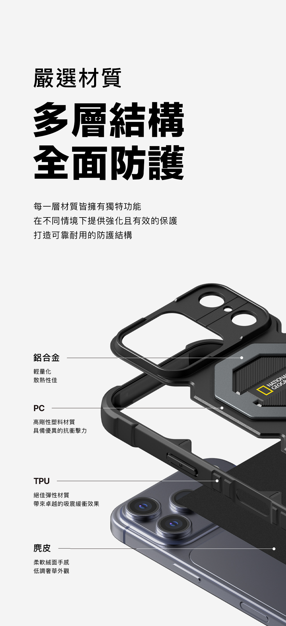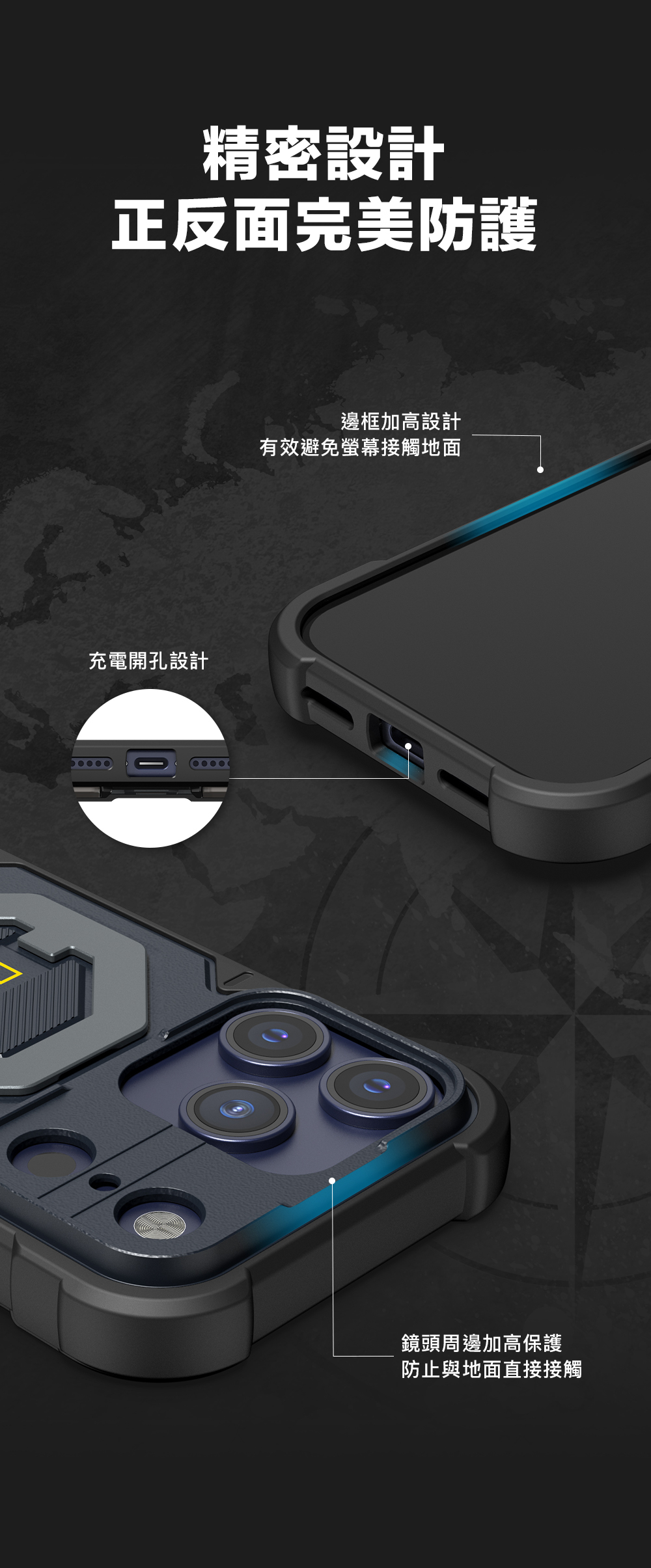 • 螢幕邊緣與後置相機提升高度設計,守護前螢幕與鏡頭,全方位防護手機