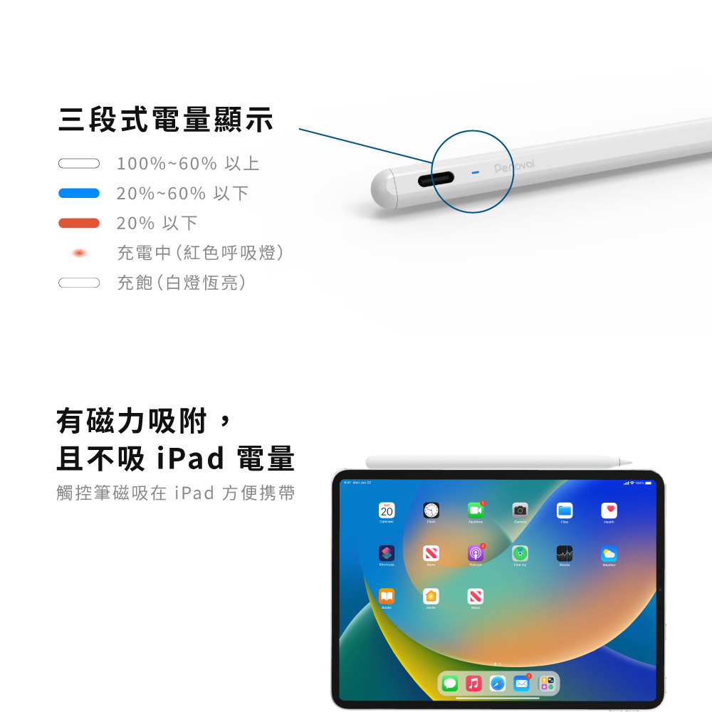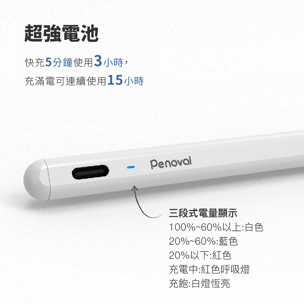 • 三段式燈號直接顯示在筆身上,隨時掌握電量