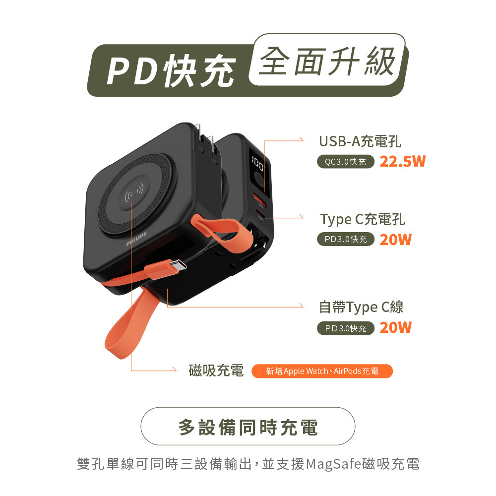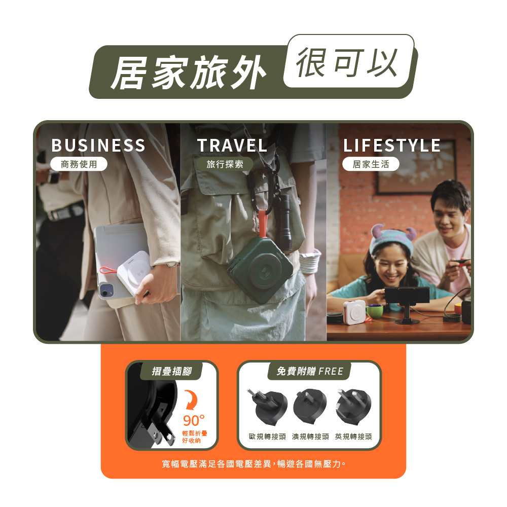 ● 自帶AC插座、便利提把、橫置手機支架、USB-C to Light