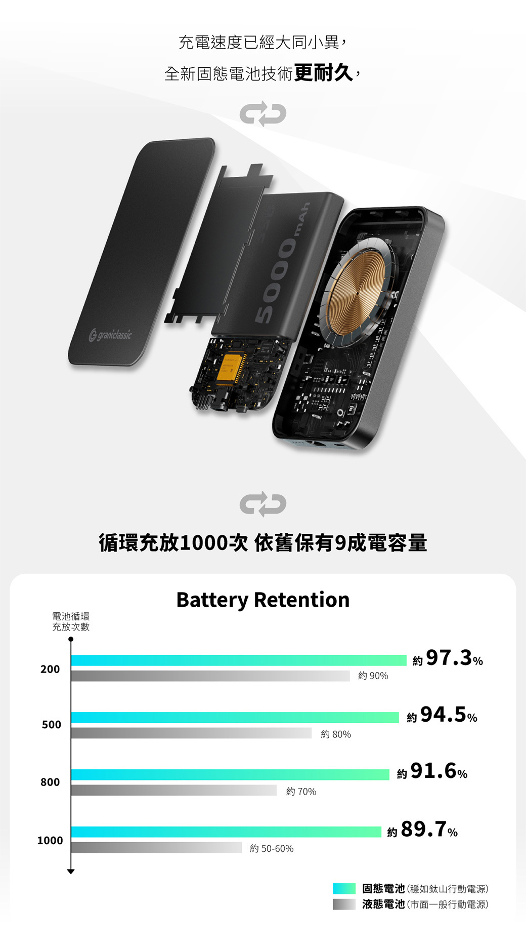 • 商品名稱 : grantclassic穩如鈦山固態行動電源5000mAh