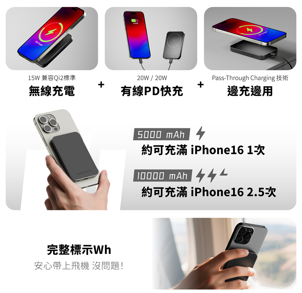 • 20W USB-C PD 快充 + 15W 無線快充,效率雙滿足