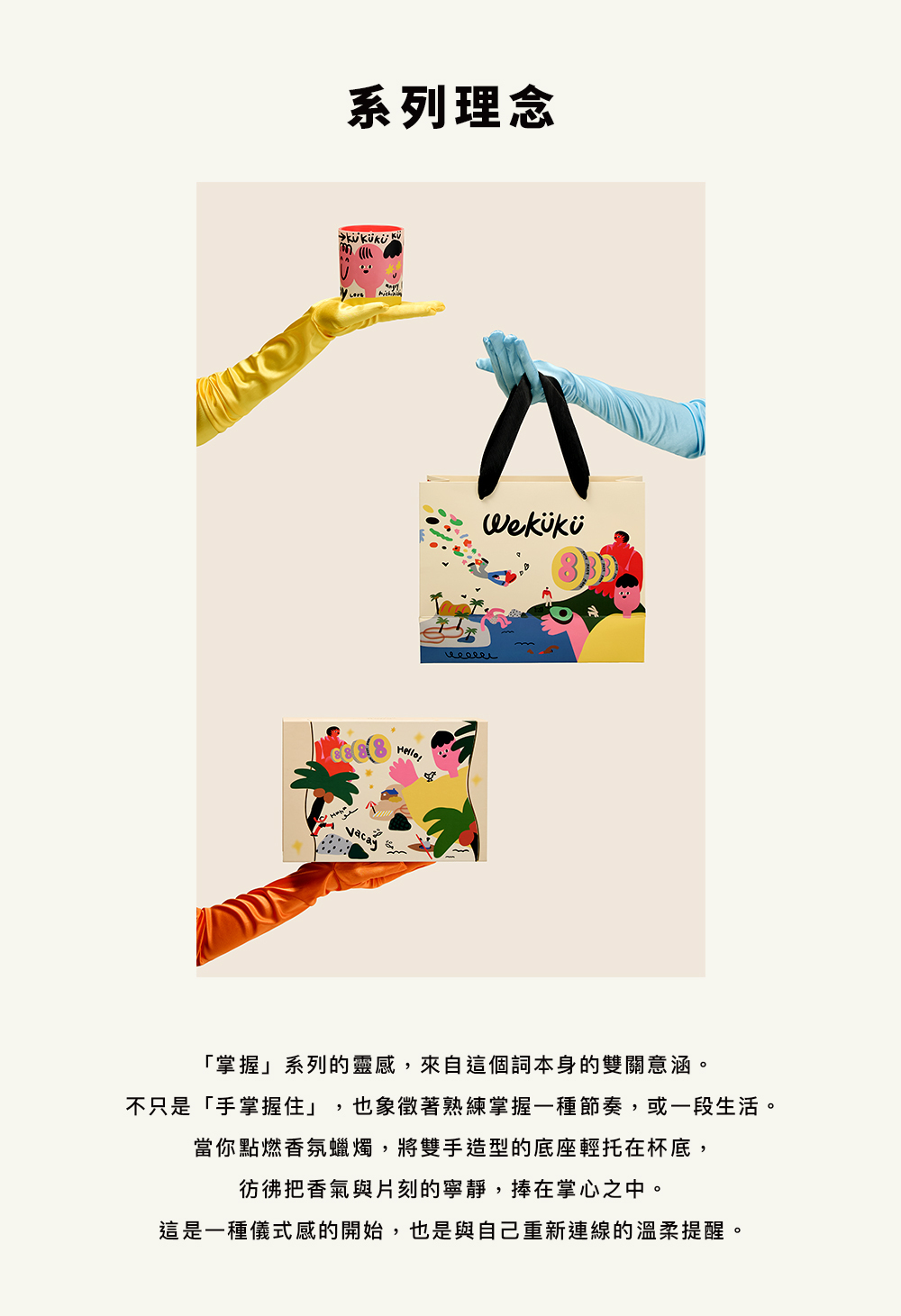 當你點燃香氛蠟燭,將雙手造型的底座輕托在杯底,
