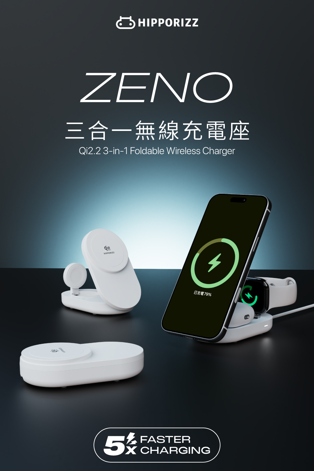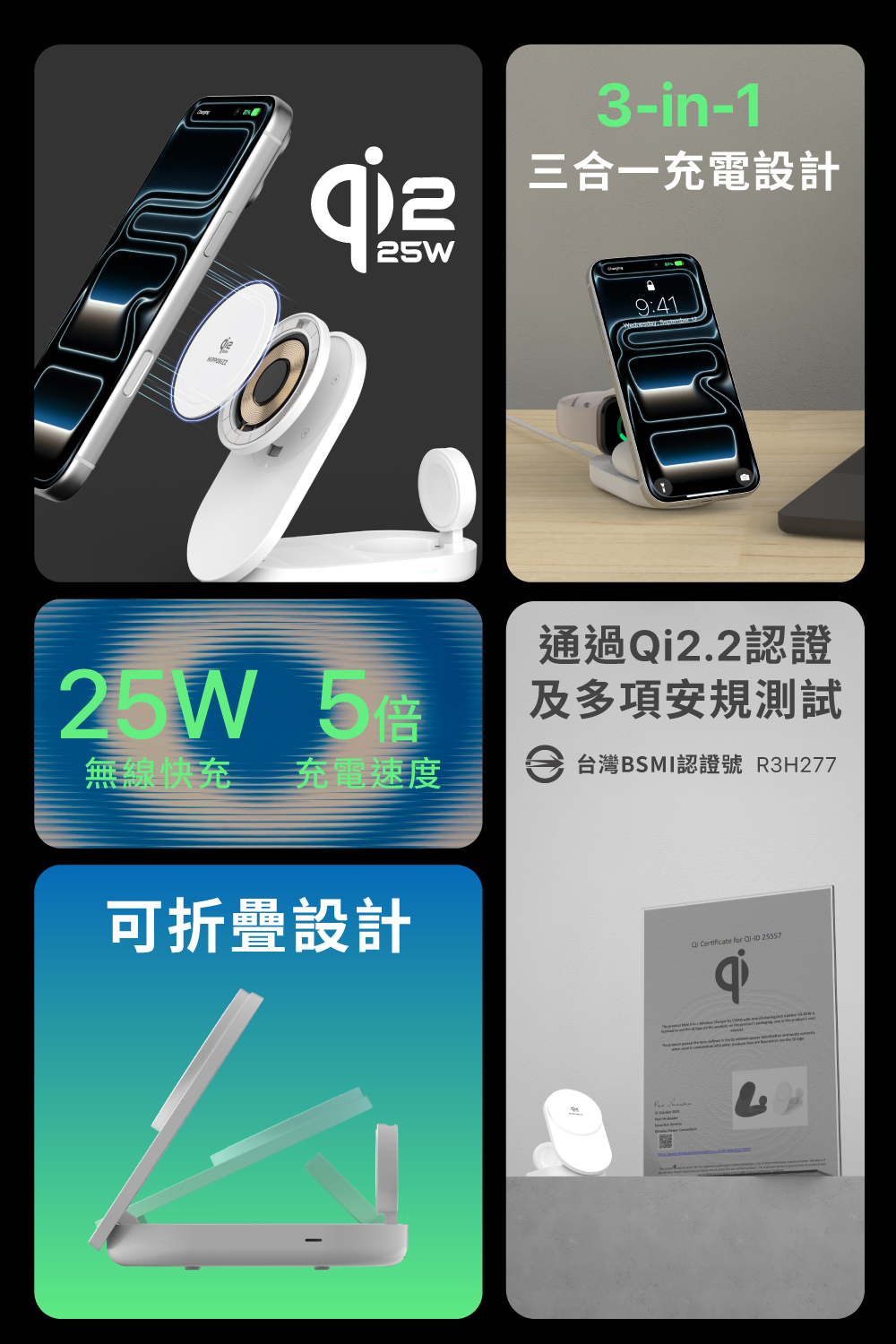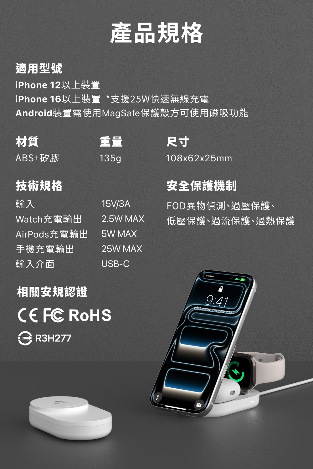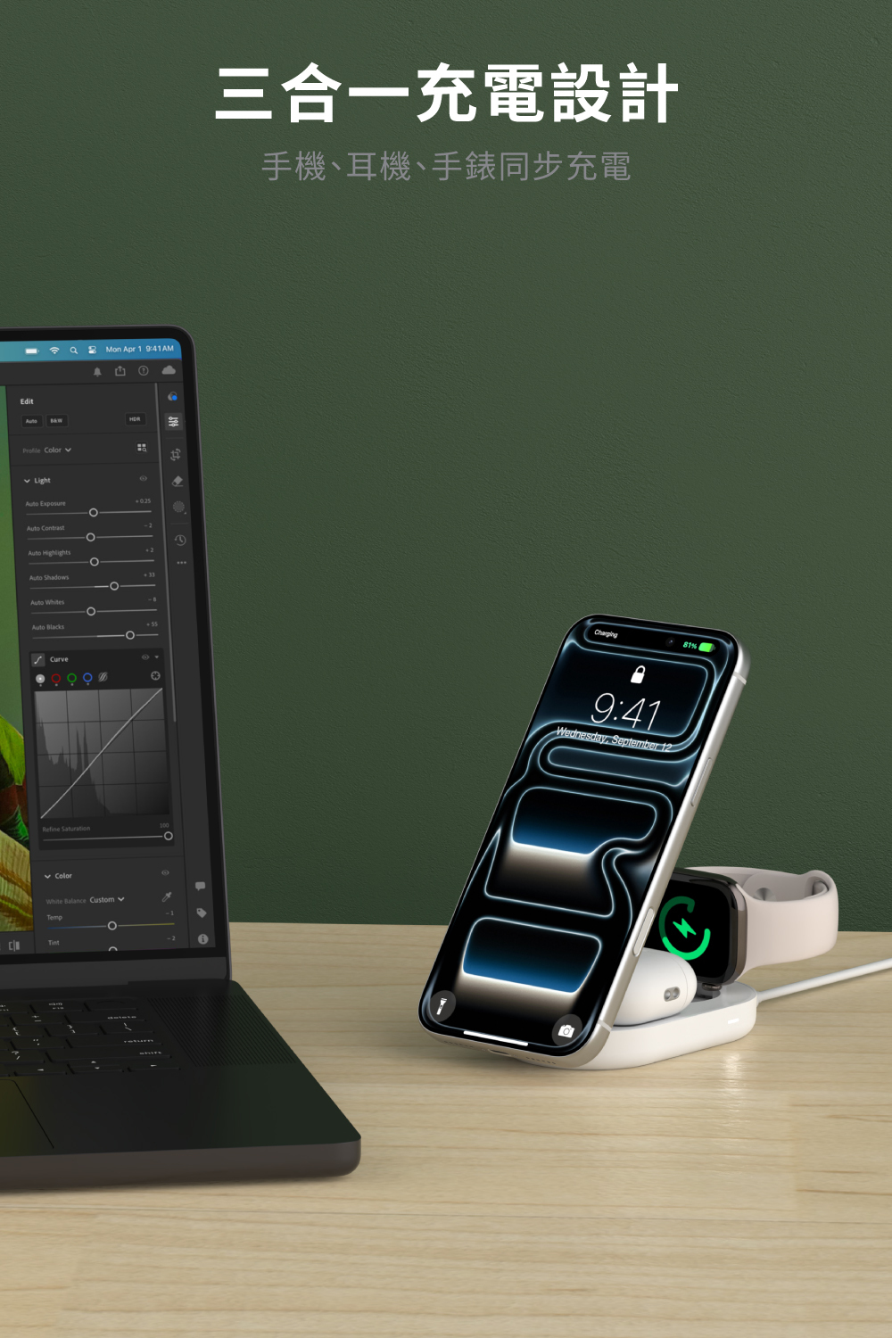 ▪ 三合一同步充電設計:手機/耳機/手錶一次充齊