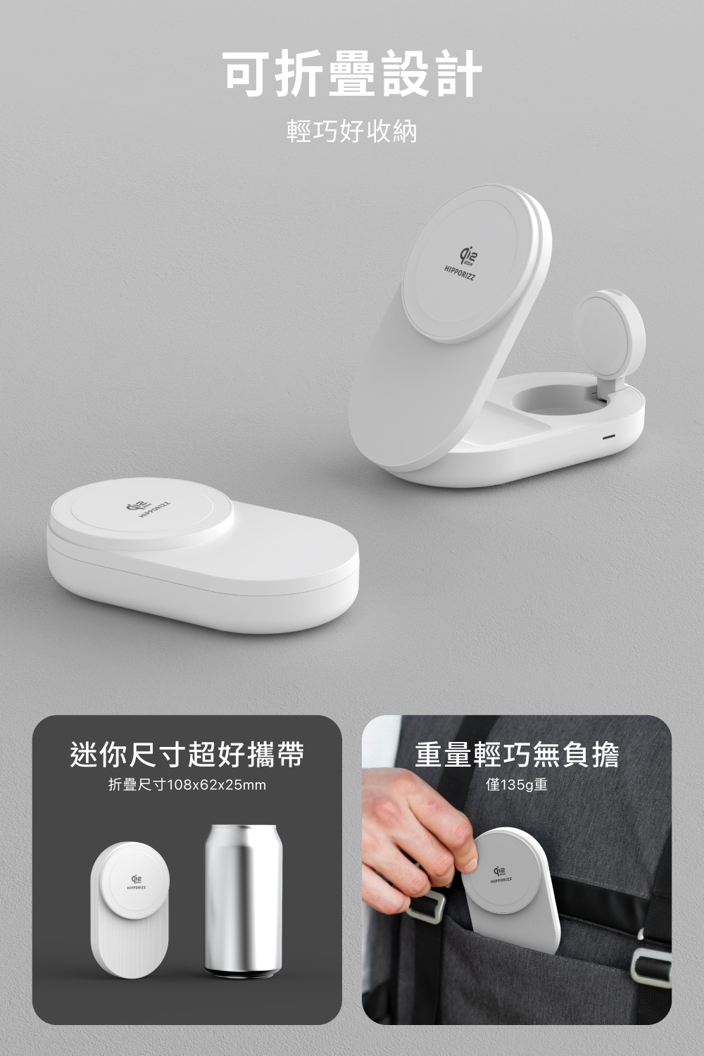 ▪ 可折疊輕巧設計:重量僅 135g,攜帶無負擔
